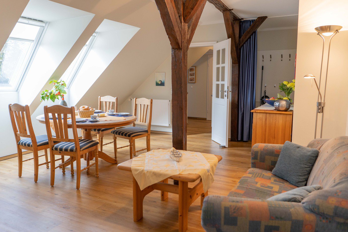 Diese Ferienwohnung befindet sich im Obergeschoss unseres schönen Bauernhauses und bietet auf 65 qm Platz für 1-5 Personen.