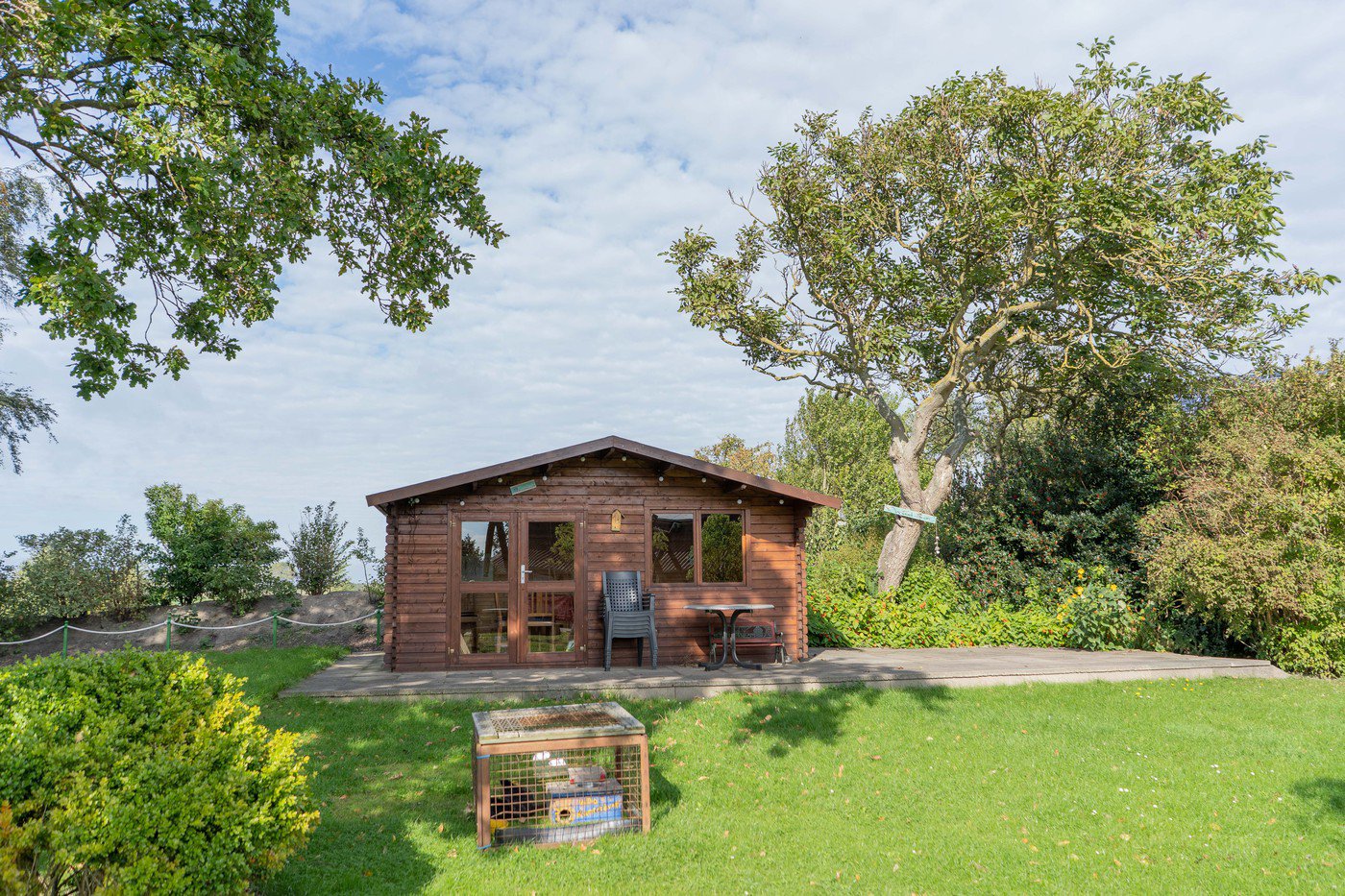 - sonniger Garten mit Liegewiese, Strandkörben, Grill, Kinderspielplatz mit Tischtennis und großem Trampolin,