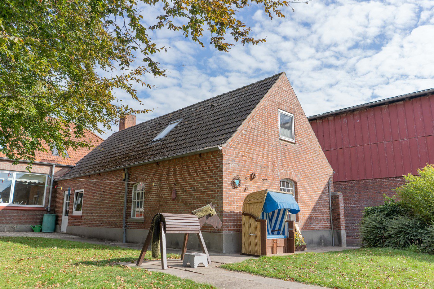 Unser großer Bauerngarten direkt hinter dem Bauernhus ist besonders im Sommer zentraler Treffpunkt für unsere Gäste. Diverse Freizeitaktivitäten ergeben sich von selbst: Strandkörbe laden zum Entspannen ein. Ein Grill ist schnell aufgestellt. Begeistert sind unsere jüngeren Gäste von unserem Kinderspielplatz mit Trampolin.