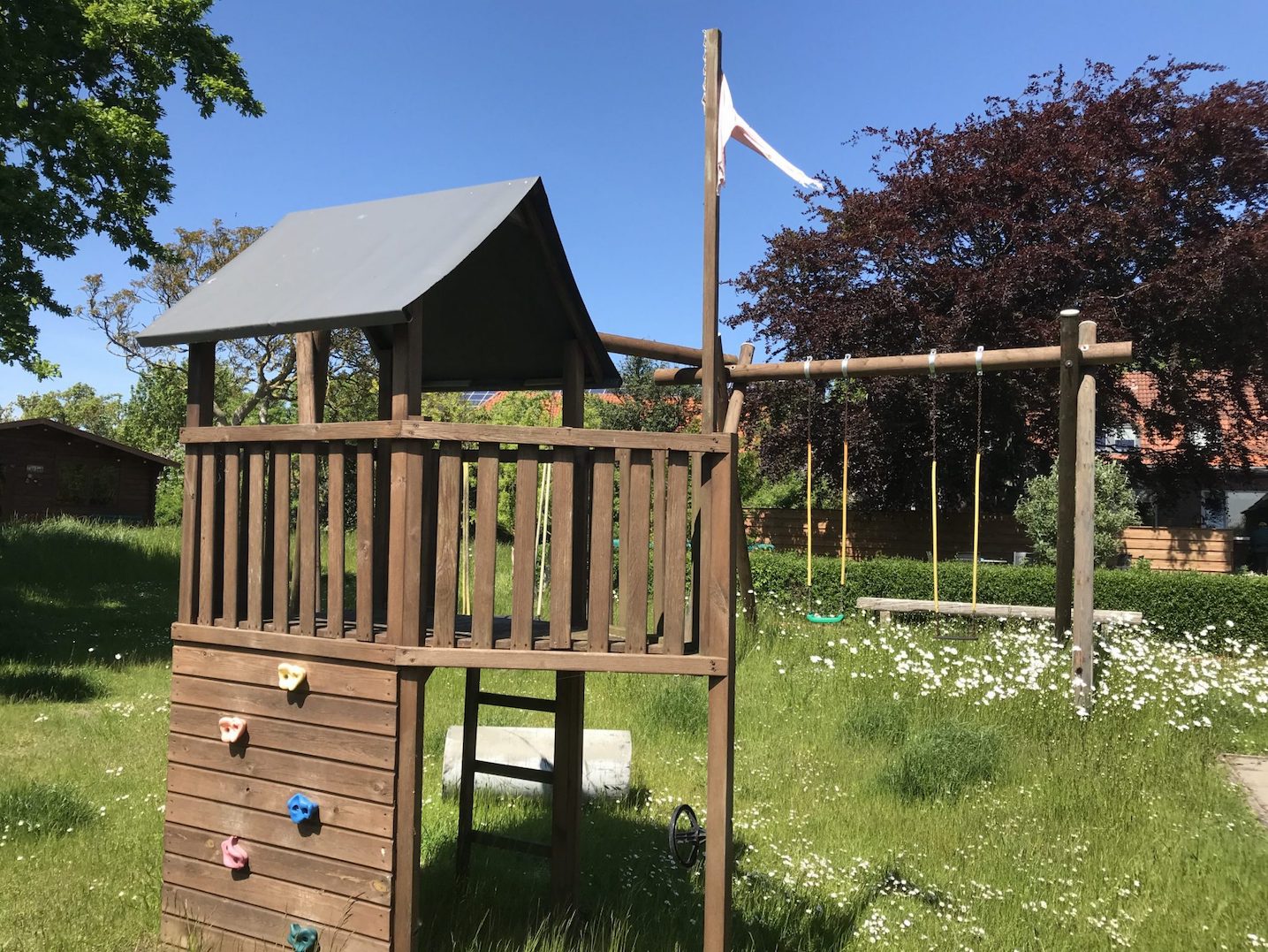 Unser großer Bauerngarten direkt hinter dem Bauernhus ist besonders im Sommer zentraler Treffpunkt für unsere Gäste. Diverse Freizeitaktivitäten ergeben sich von selbst: Strandkörbe laden zum Entspannen ein. Ein Grill ist schnell aufgestellt. Begeistert sind unsere jüngeren Gäste von unserem Kinderspielplatz mit Trampolin.