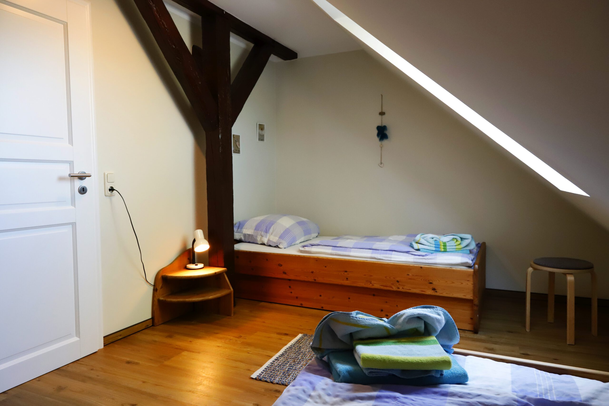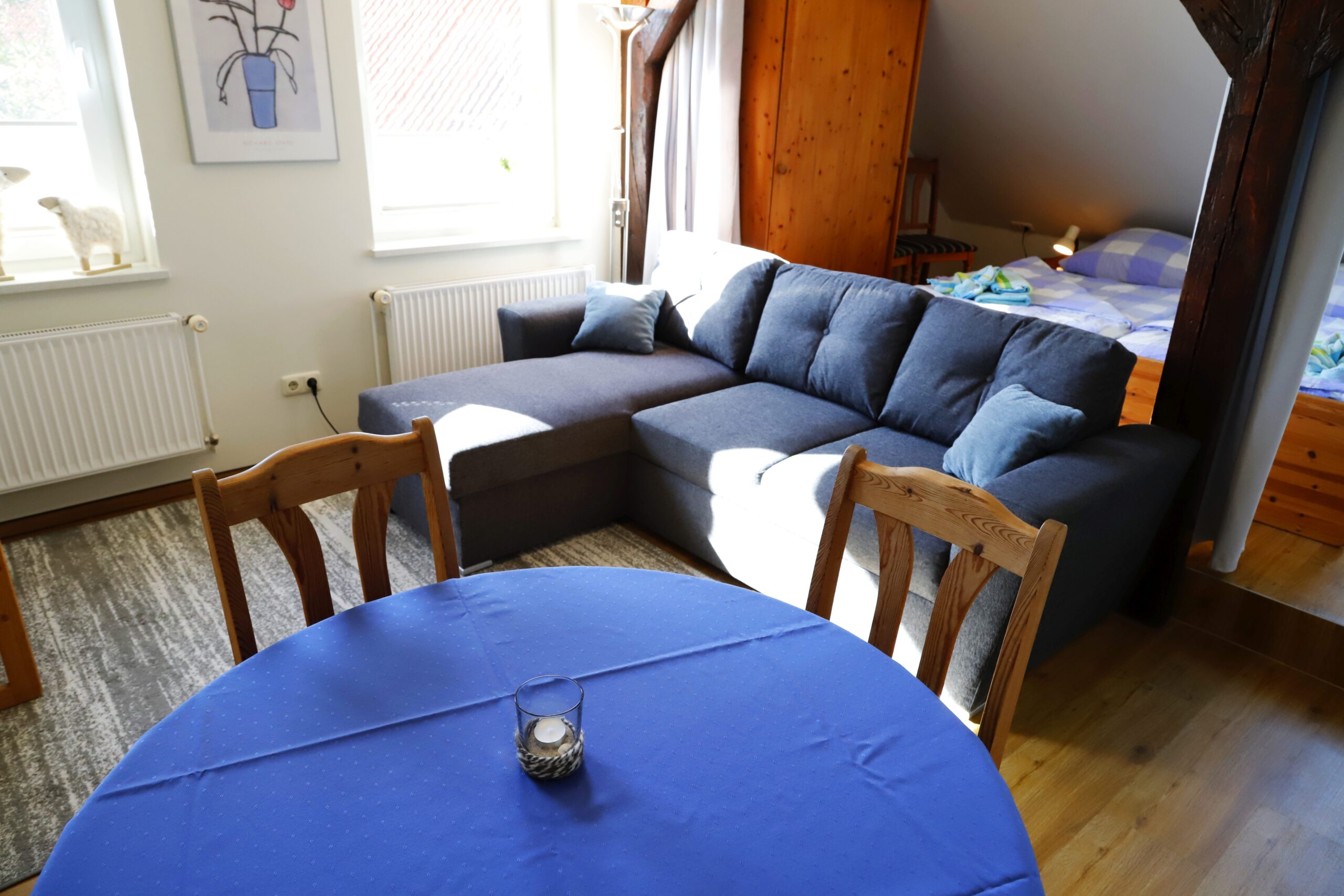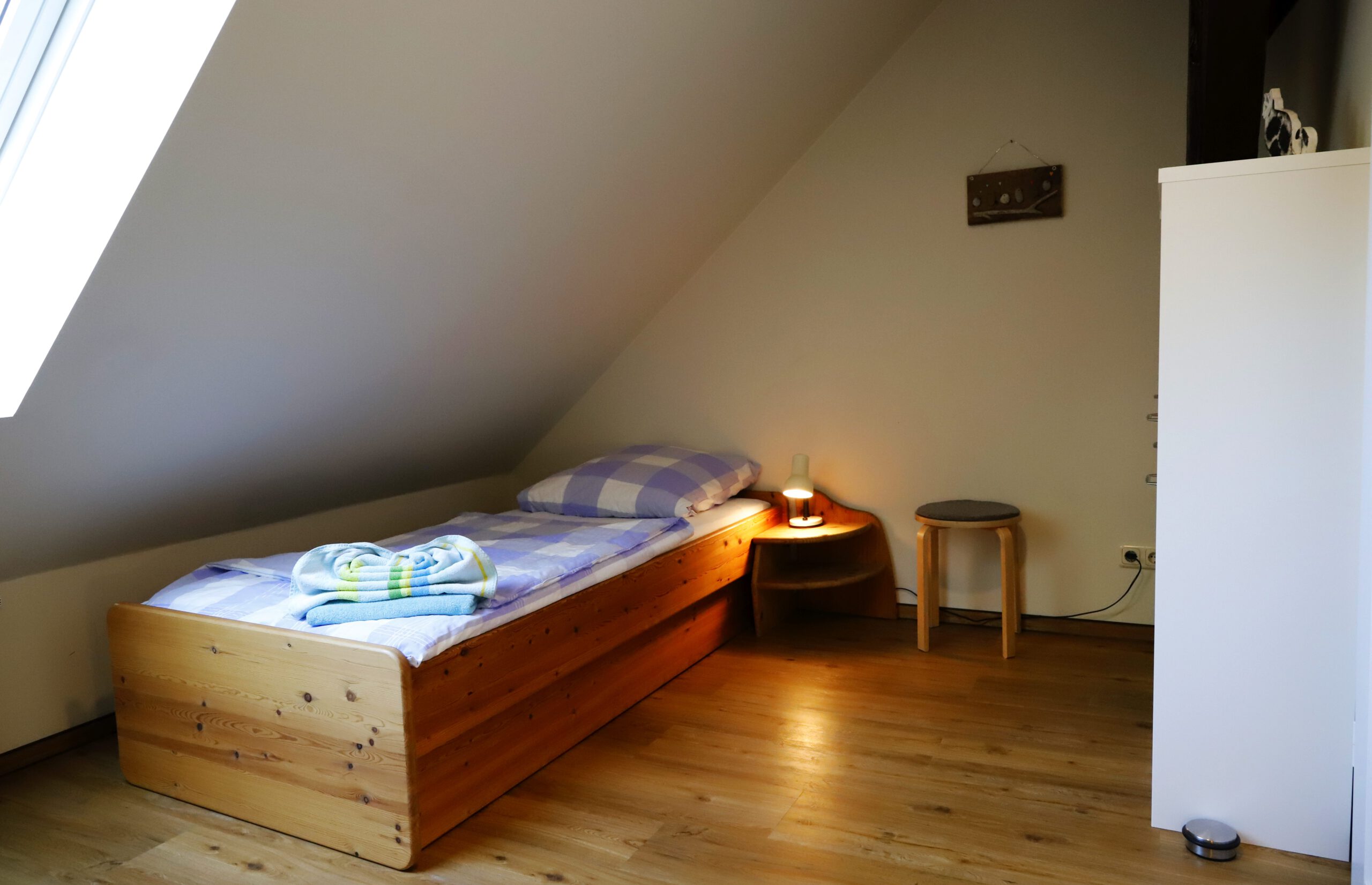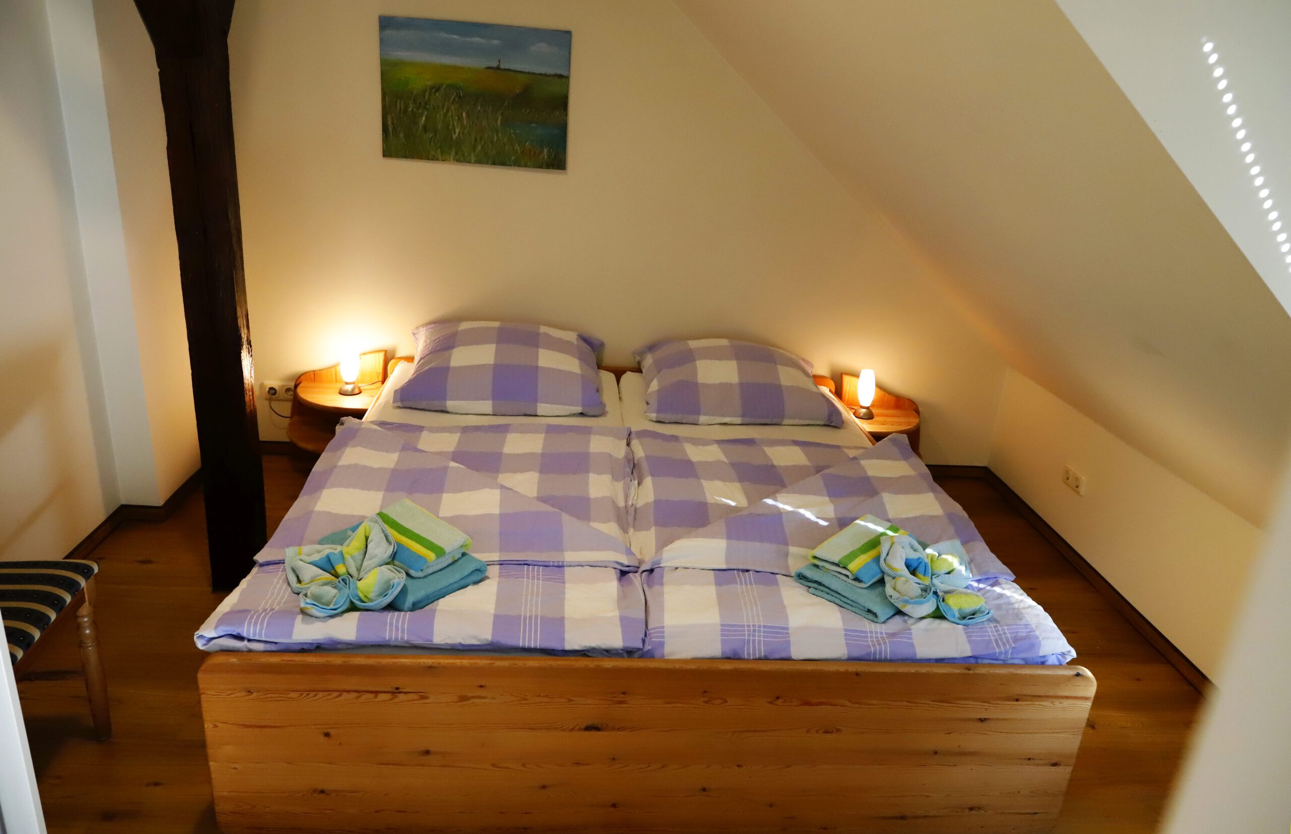 Diese Ferienwohnung befindet sich im Obergeschoss unseres schönen Bauernhauses und bietet auf 45 qm Platz für 1-3 Personen.